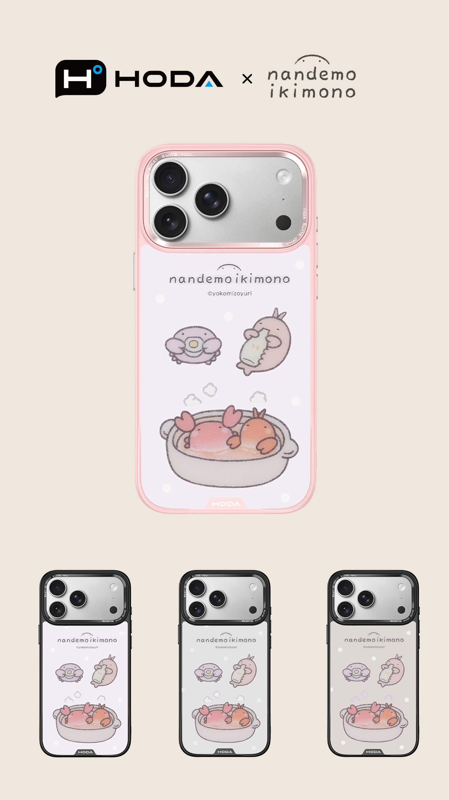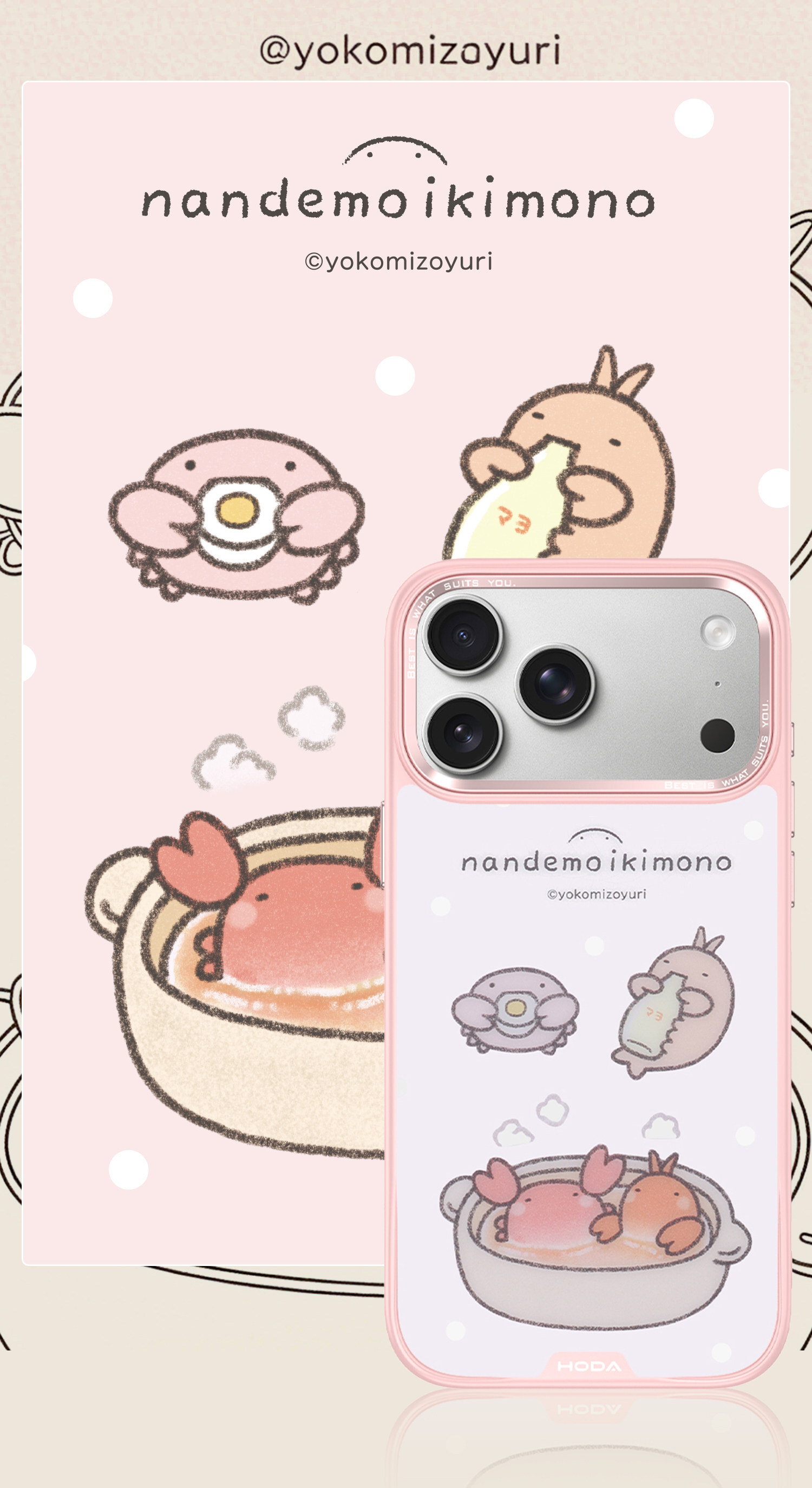 【iPhone 17 / 16 / 15 】Happy Food #Nandemo ikimono|Diverse Case with Magnet Military Standard | HODA®