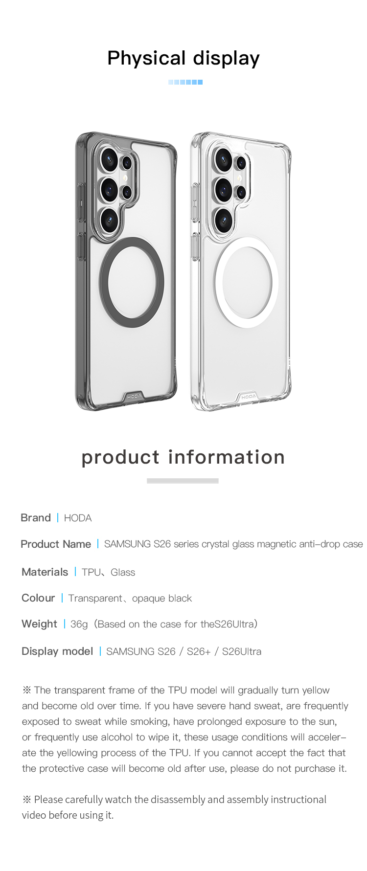 【Samsung Galaxy S26 Ultra / S26 Plus / S26 】 Crystal Transparent Phone Case With Magnet Military Standard MagSafe| HODA ®